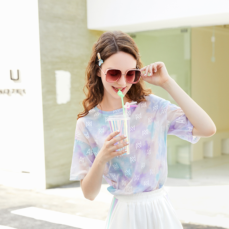 zklin渐变扎染短袖 设计感小众高级感晕染上衣夏 宽松t恤女很仙