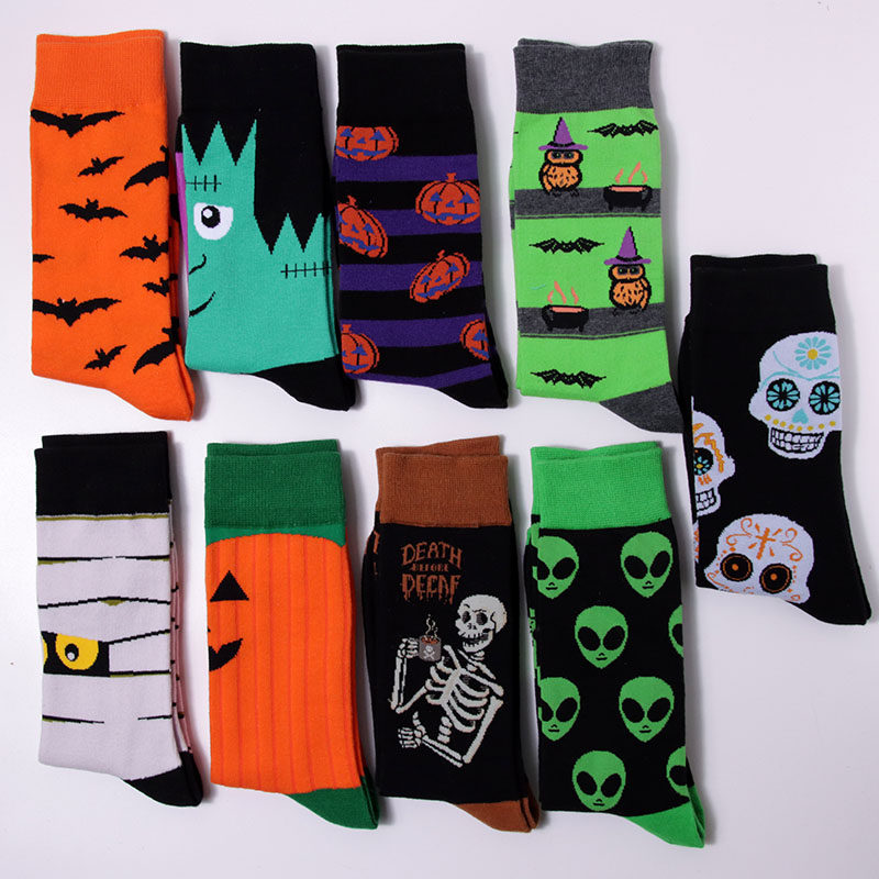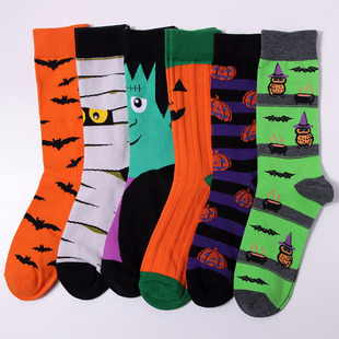 万圣节中筒袜子男南瓜巫女骷髅头吸血鬼恶搞怪ins潮街头高帮袜