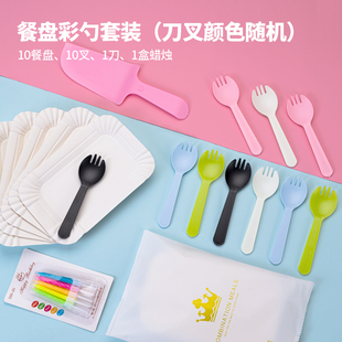 蛋糕盘叉一次性纸盘刀叉盘组合套装 生日餐具叉勺盘子餐盘蜡烛碟子