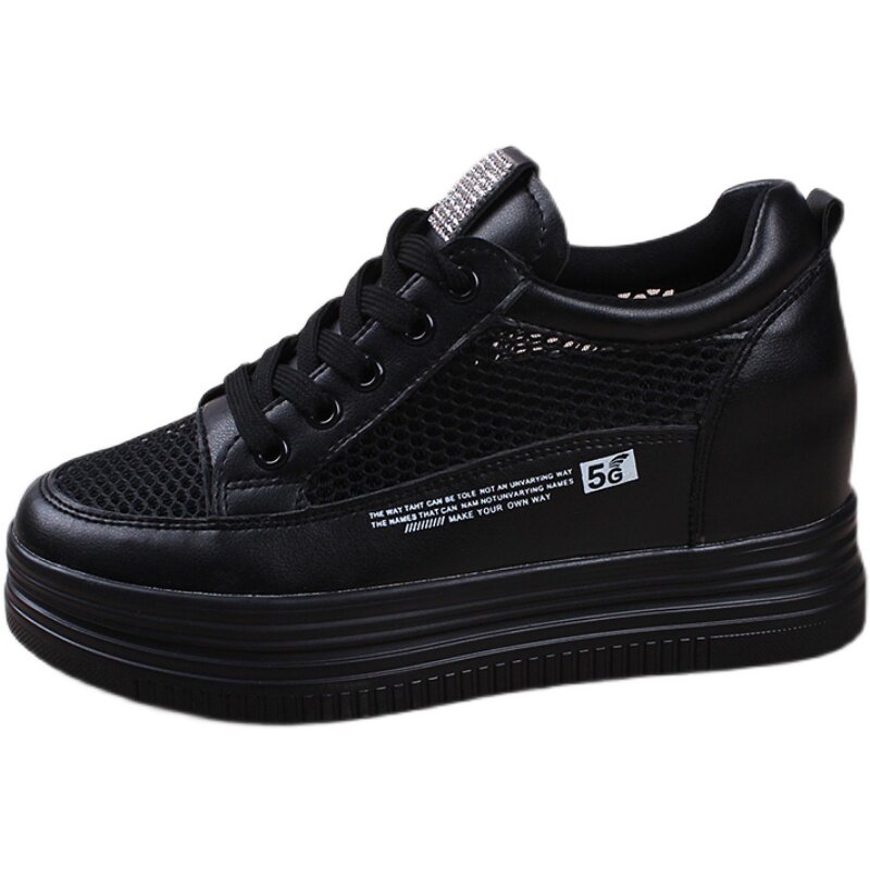 春秋单鞋 松糕厚底女单鞋 内增高7cm全黑色学生鞋 女鞋 2025秋冬新款