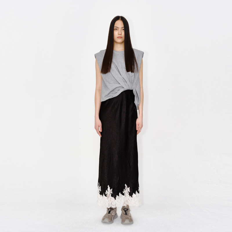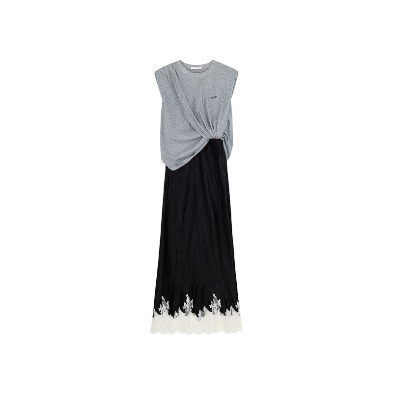 AVVENN撞色拼接假两件多层次缎面休闲连衣裙懒人套装 AM31101738
