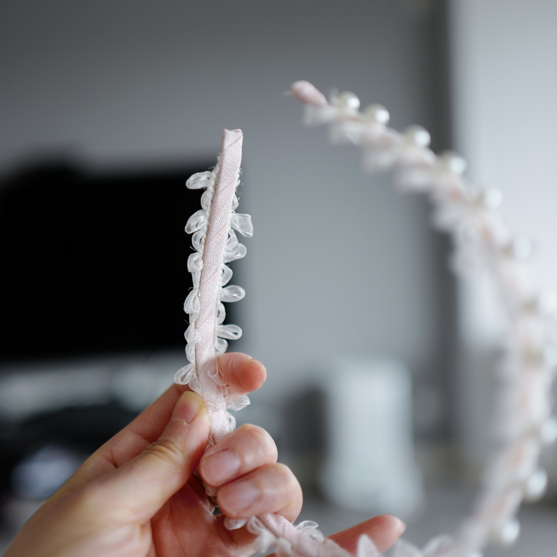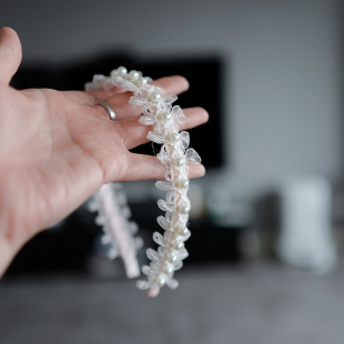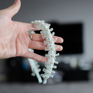 小女生包布压发儿童丝带结珍珠头箍甜美公主风发饰头饰手工发箍