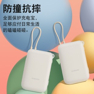 适用小米自带线充电宝硅胶保护套10000毫安22.5W口袋版 自带线保护套防摔防划软壳挂绳保护套硅胶卡通可爱透明