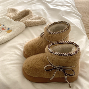 潮 保暖加绒外穿包跟棉鞋 半岛山茶花 民族风ins中筒雪地靴女冬季