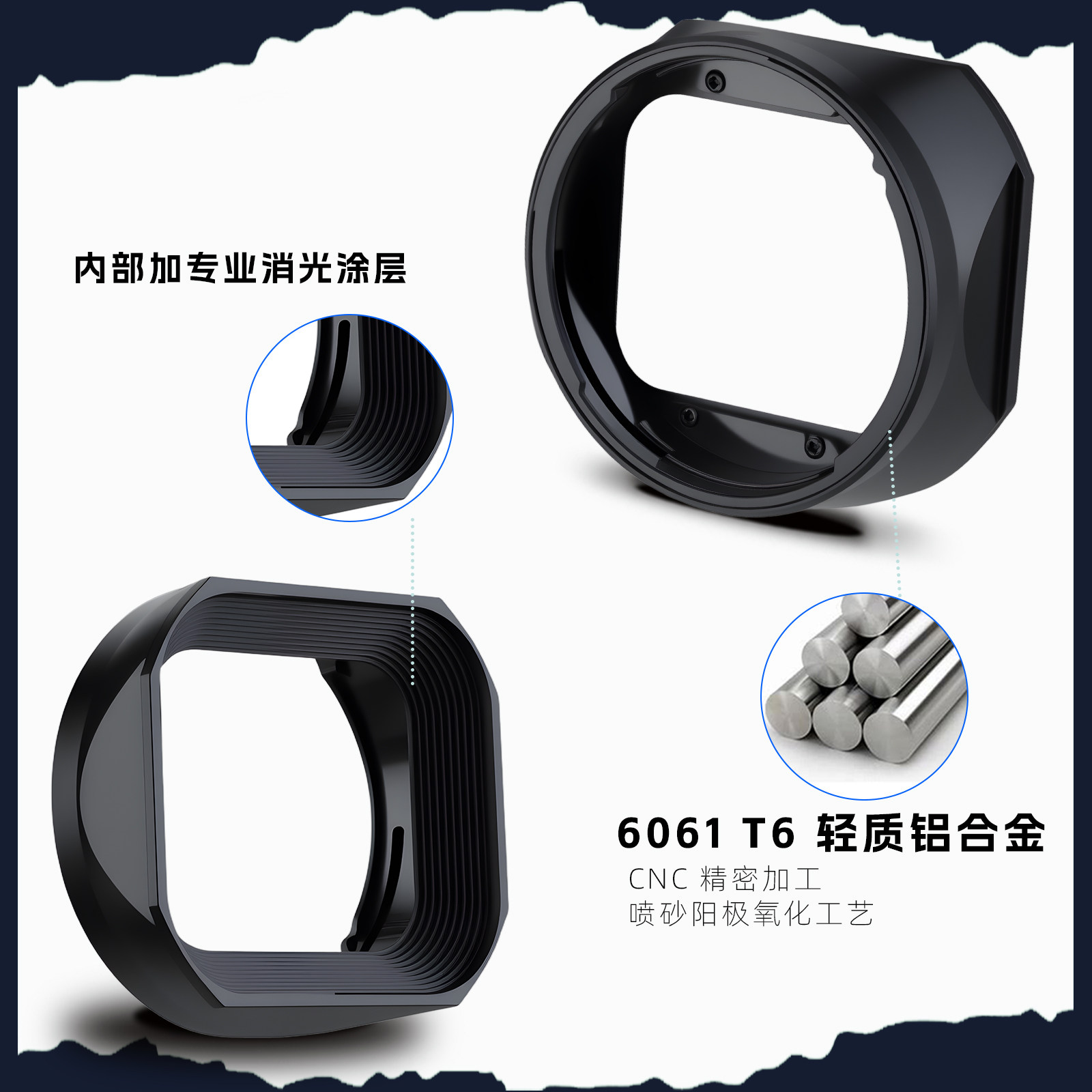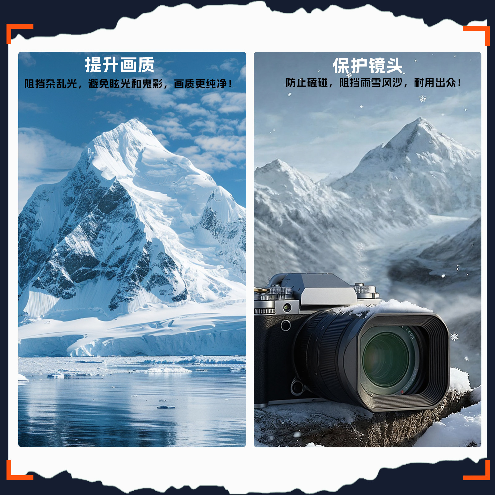 4.8方形遮光罩XF33mmf1.4 23mmf 1.4 号歌用于富士XF16 F2.8 WR镜头XT5XT50XE4XH2相机配件送盖 50mm