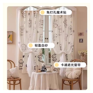 窗帘免打孔安装 遮光出租房小窗户纱帘 遮阳帘简易魔术贴2024新款