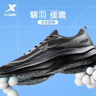 夏季 男鞋 新款 黑色跑步鞋 子 特步轻风 爸爸减震透气网面运动鞋 跑鞋