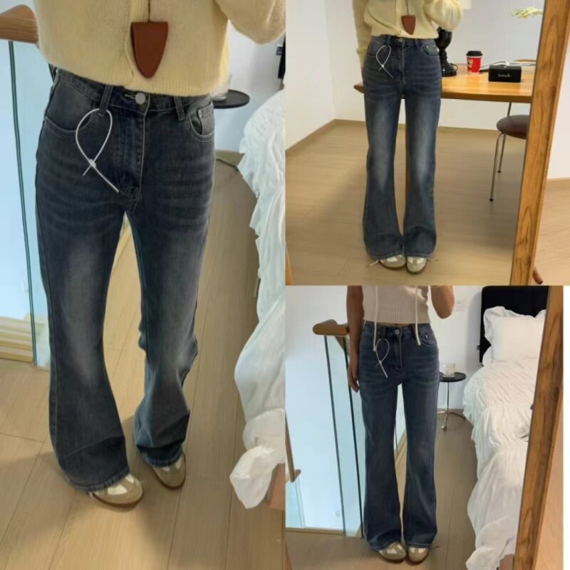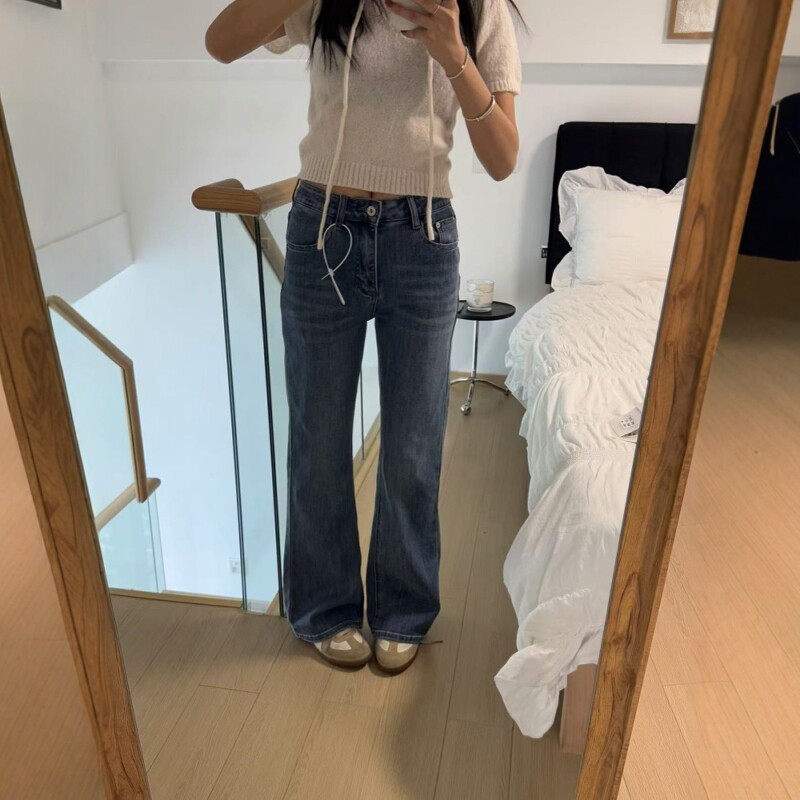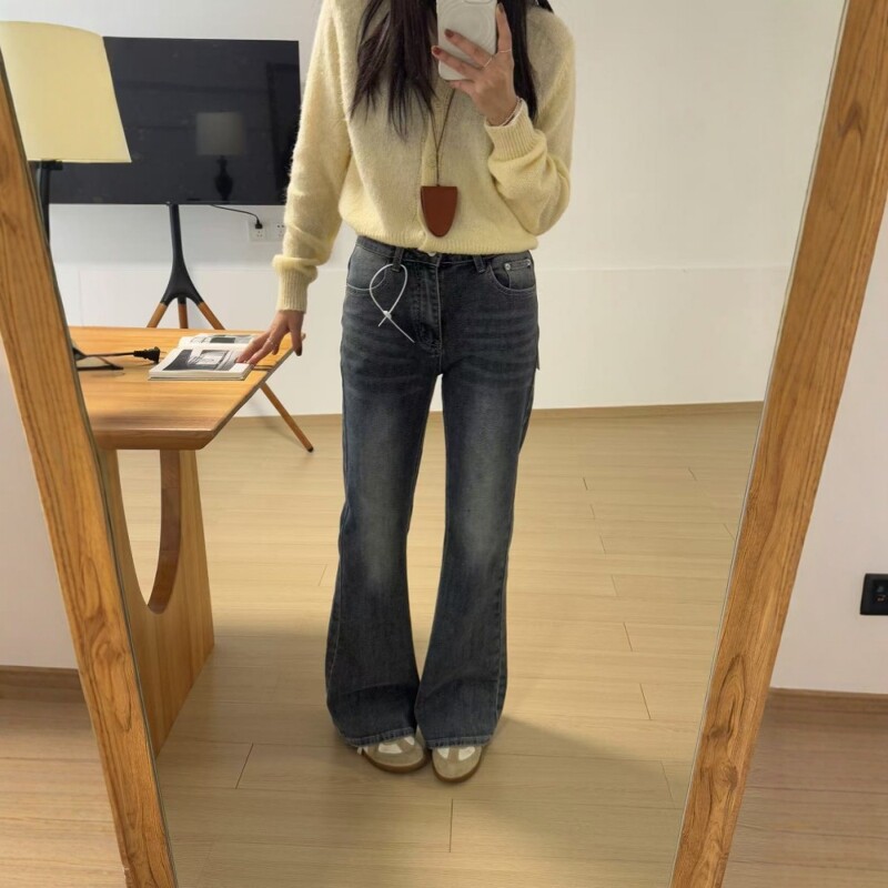 0150高腰牛仔喇叭裤 水洗牛仔裤 修身 新款 女 弹力显瘦通勤春季 AND