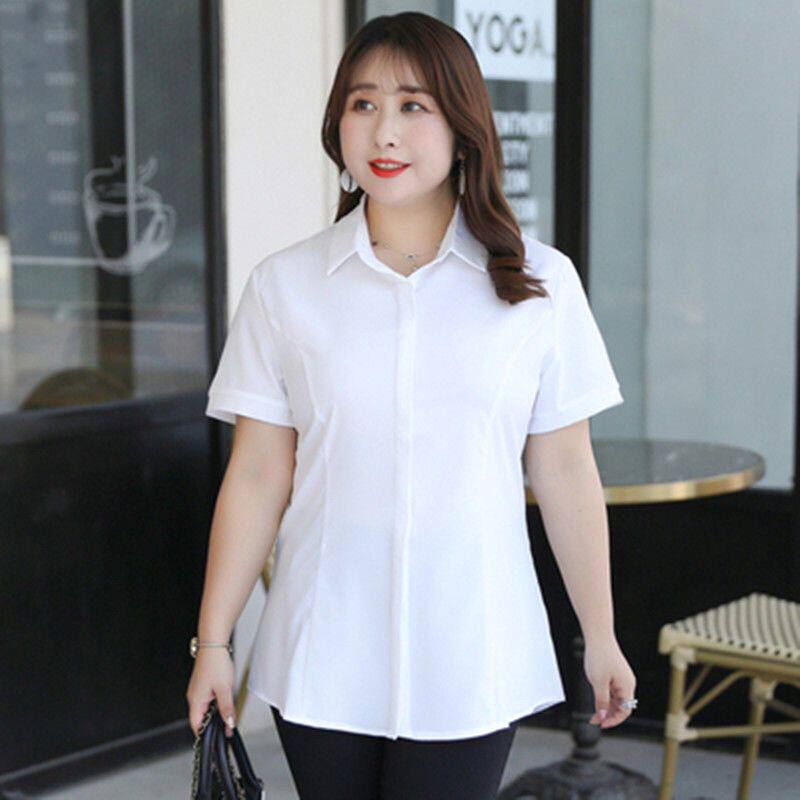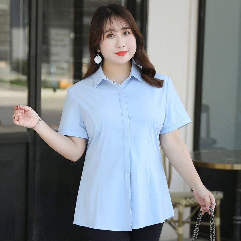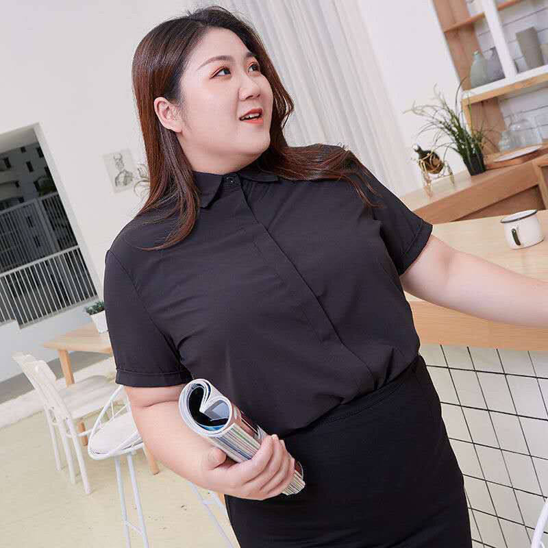 200斤春夏宽松胖妹妹职业衬衣工作服正装 女胖mm长袖 白衬衫 大码