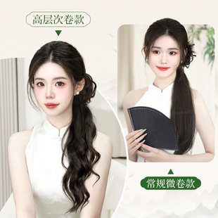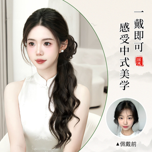 假发马尾女新中式 旗袍国风微卷低马尾 抓夹古风汉服假发辫子仿真式