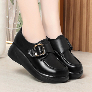 女2026新款 舒适松糕底小皮鞋 秋季 真皮软底妈妈鞋 中年女鞋 厚底单鞋