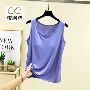 吊带衫 莫代尔免文胸背心宽松夏季 无袖 外穿带胸垫上衣圆领大码 薄款