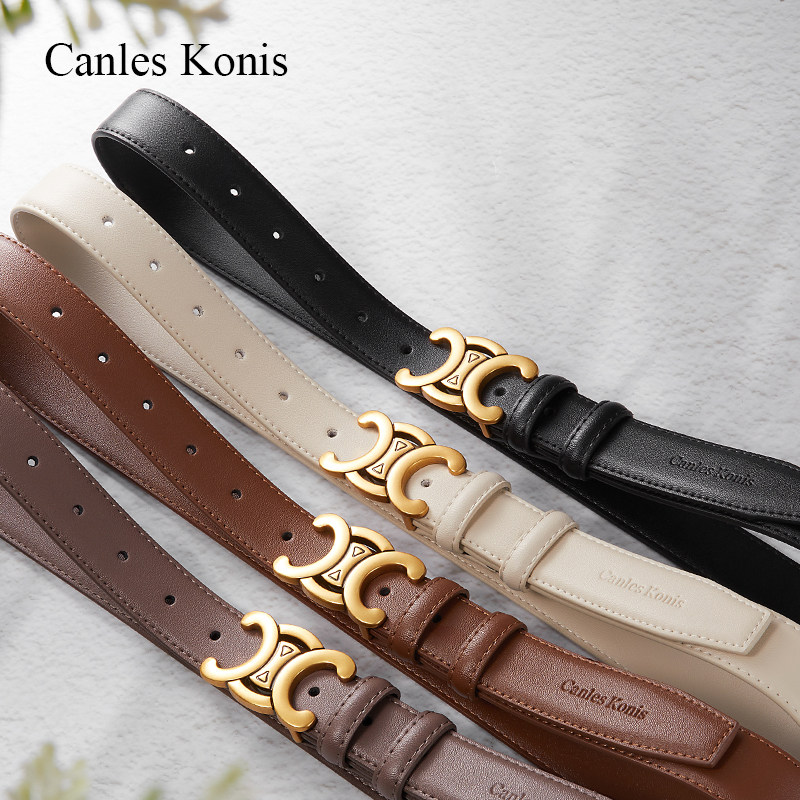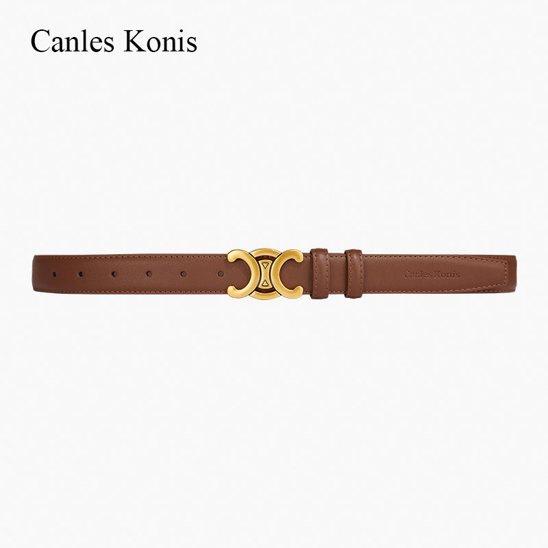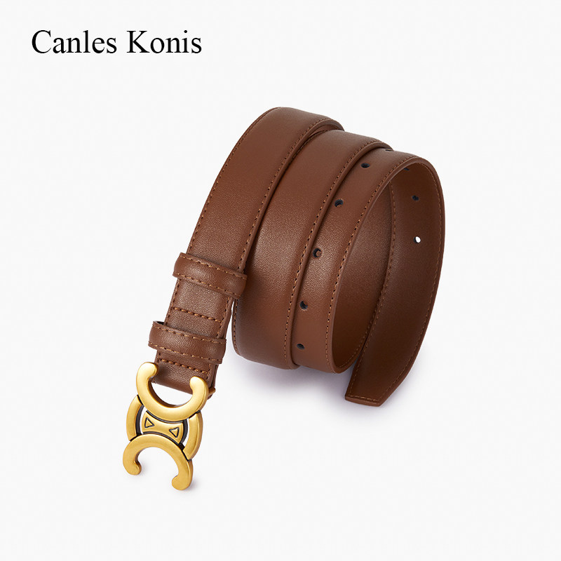 饰配牛仔裤 官网Canles 棕色宽腰带女装 2025新款 Konis真皮皮带女款