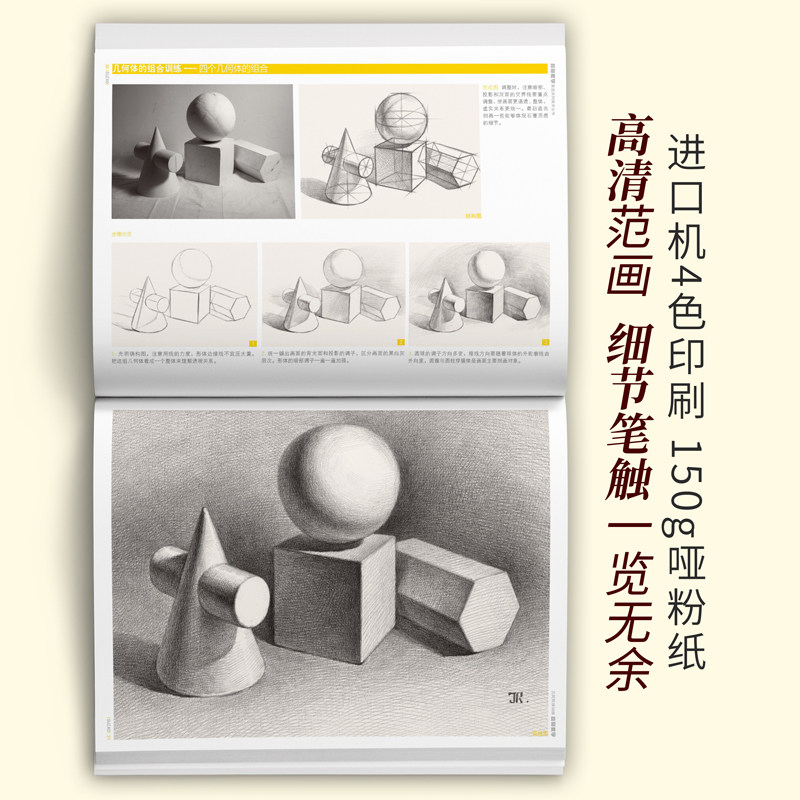 素描几何体入门教材临摹书画册儿童教程石膏结构图形美术生对临画画自学零基础初级绘画训练习册范本小学生铅笔初学者组合技法课程