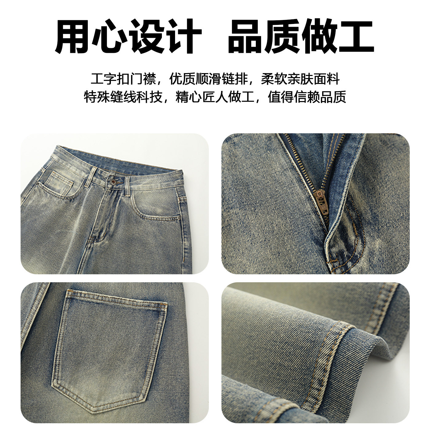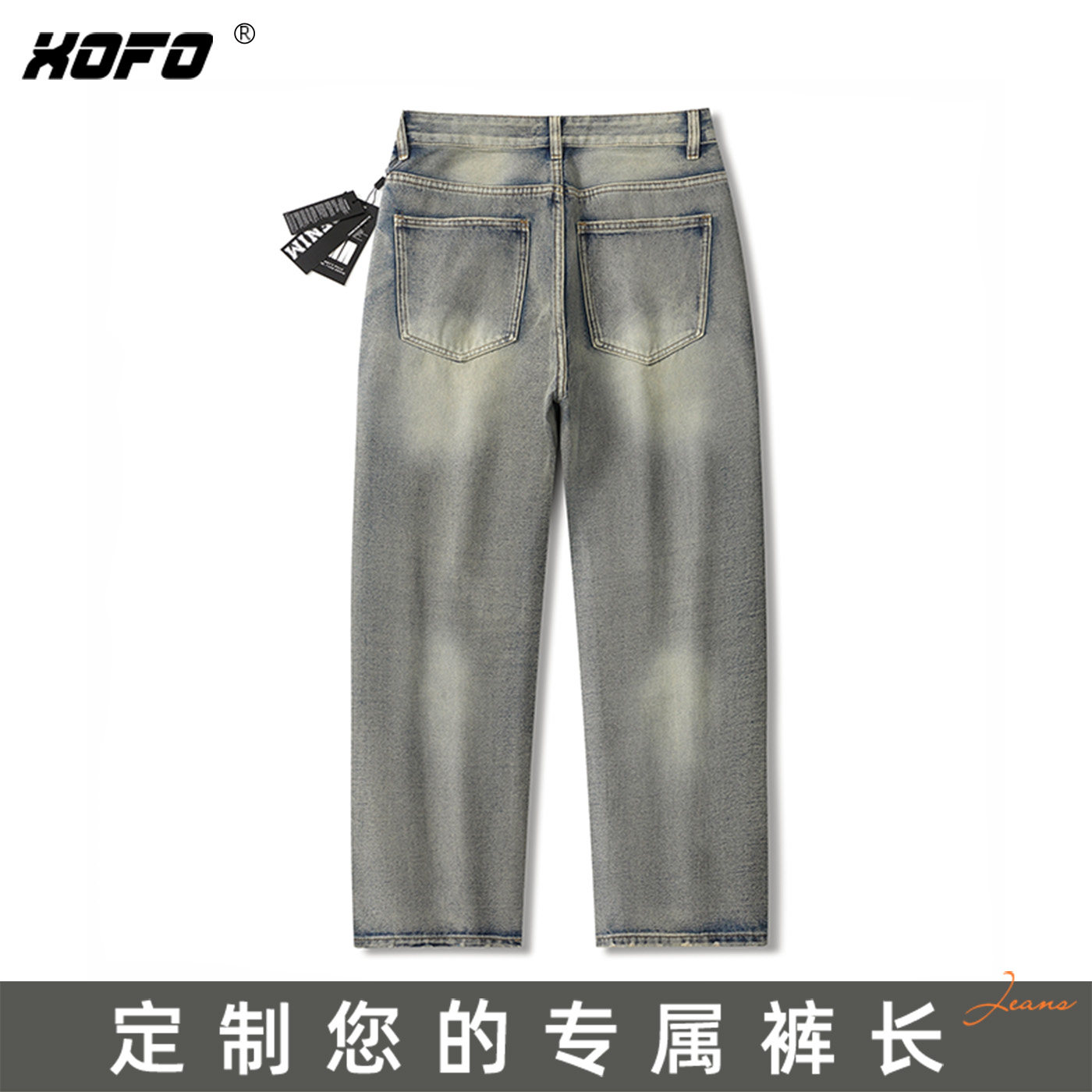 定制裤 冬冬新款 长 男款 休闲舒适百搭 复古黄泥染宽松直筒牛仔裤