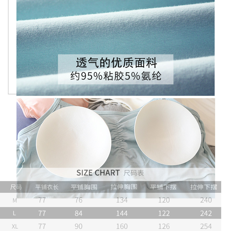 吊带睡裙麻灰带胸垫莫代尔大码 简约家居服短裙打底裙 内搭夏季