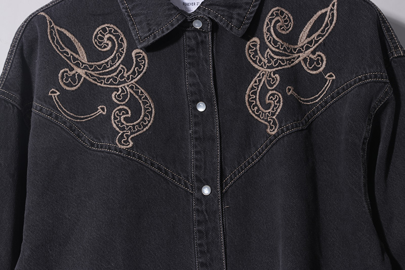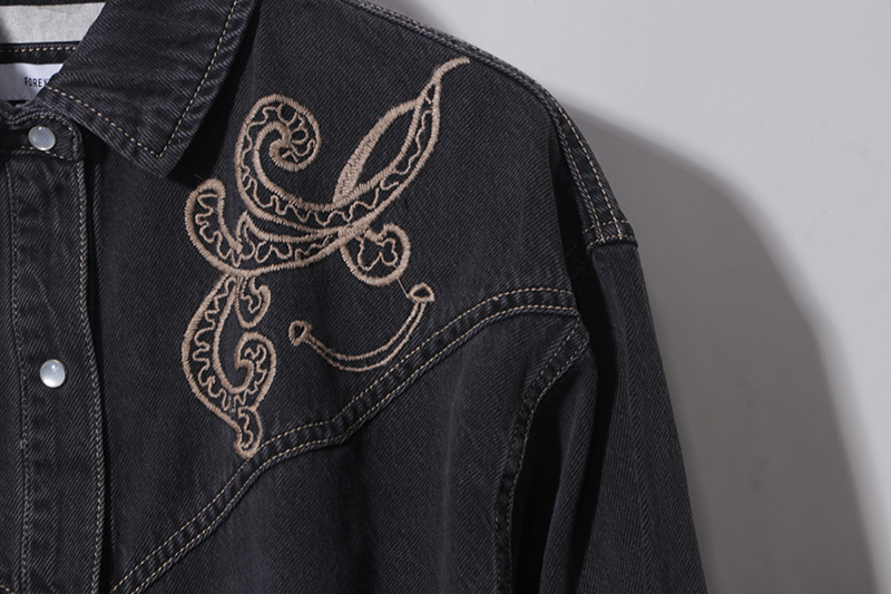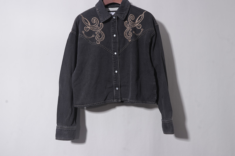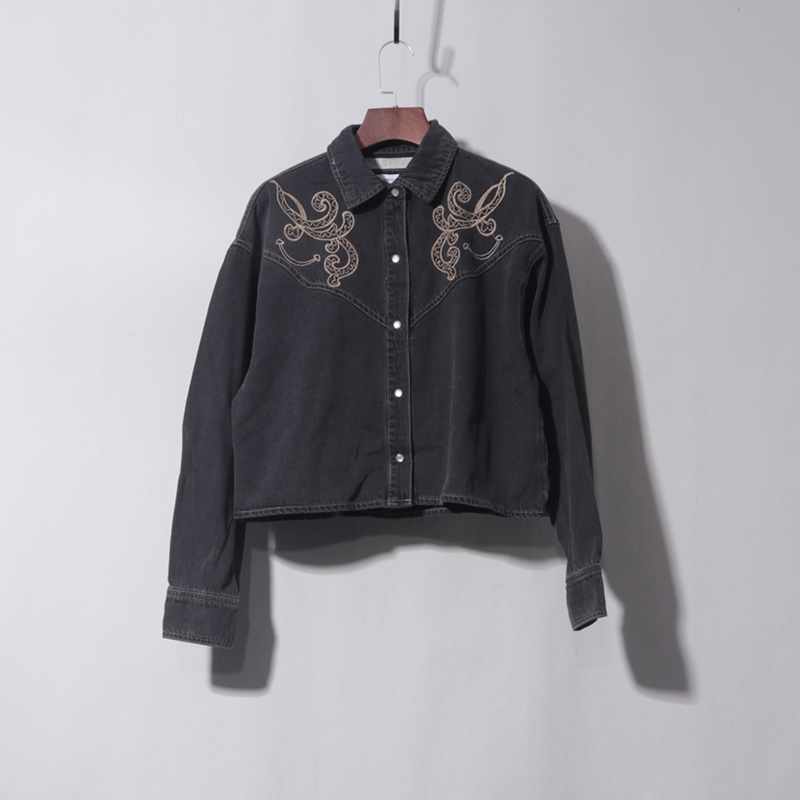 黑灰胸前刺绣牛仔衣复古牛仔衫 外套水洗夹克短上衣女 春季