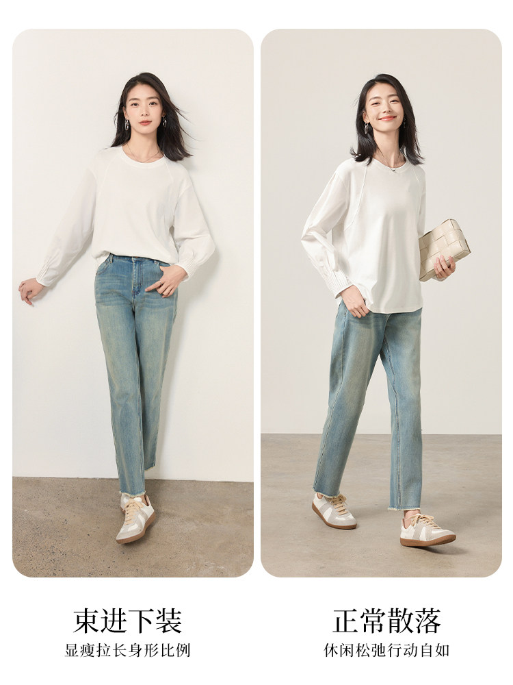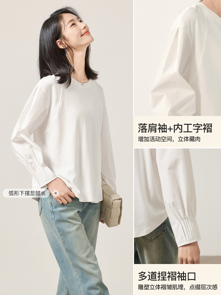 宽松休闲拼接长袖 新款 上衣 纯色设计感T恤女2026春季 OSA欧莎灯笼袖