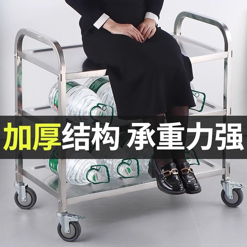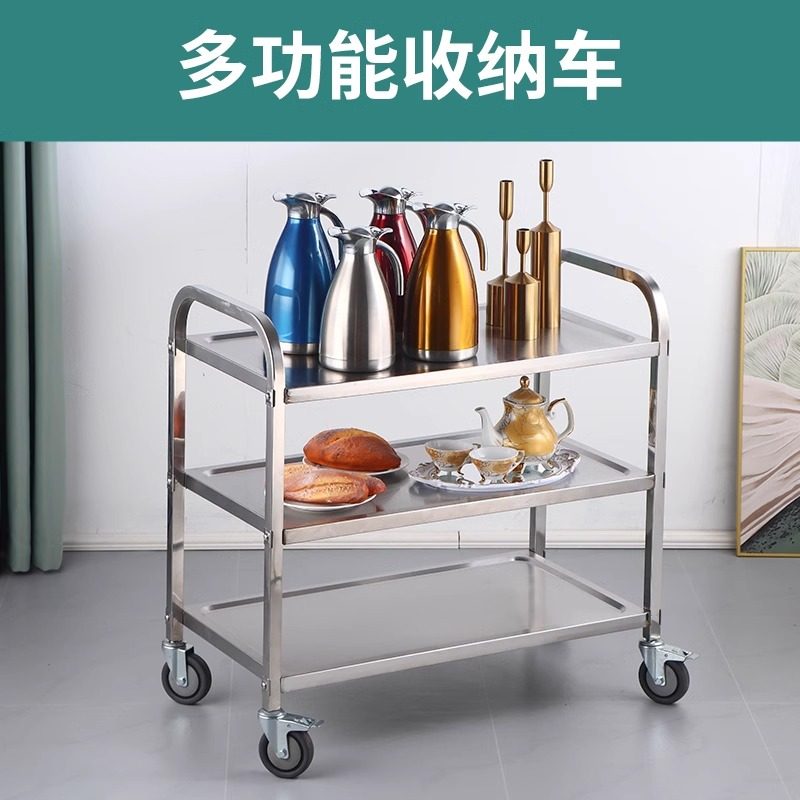 加厚不锈钢送餐车饭店收碗车餐厅上菜车商用三层移动酒店双层推车