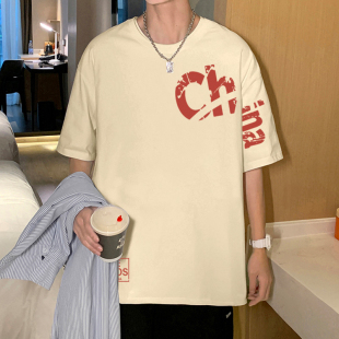 t恤男潮牌2026夏季 潮流打底衫 新款 字母印花宽松半袖 纯棉美式 短袖