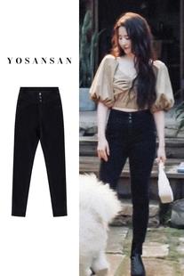 女小脚显瘦紧身裤 黑色高腰牛仔裤 地方刘亦菲许红豆同款 去有风