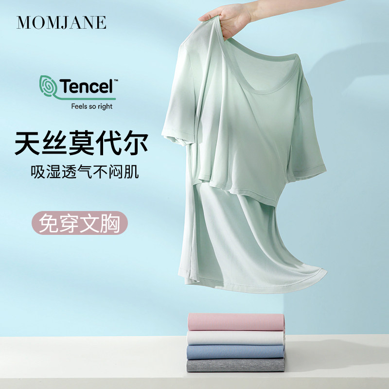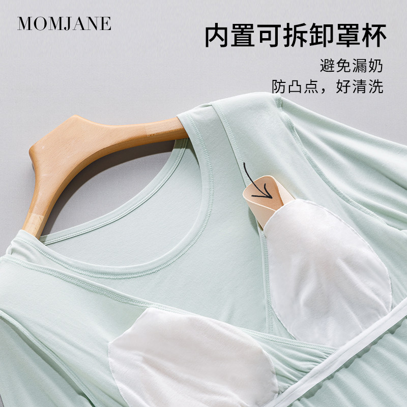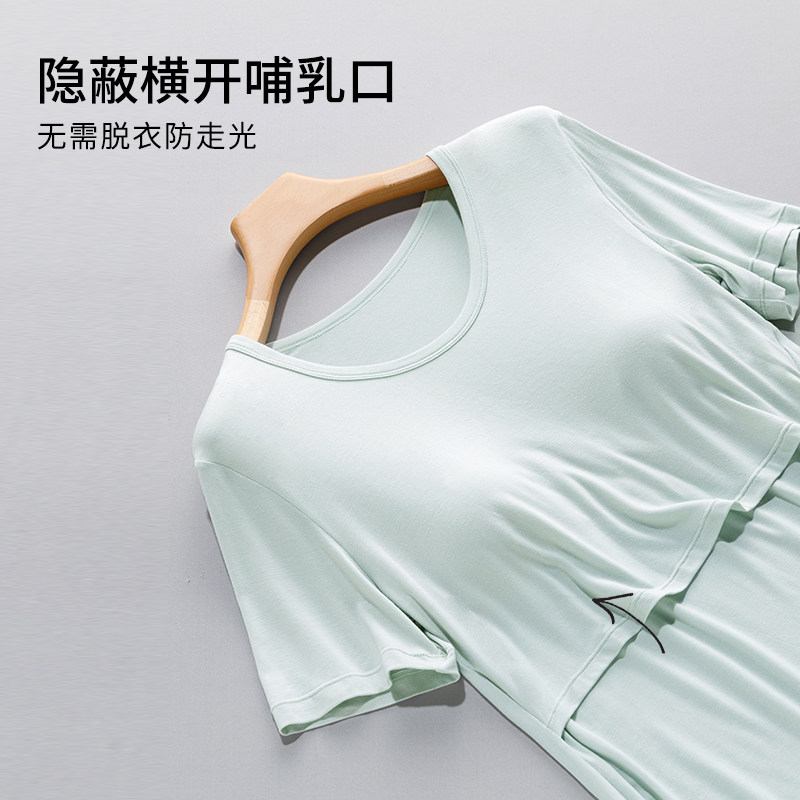 莫代尔带胸垫孕妇喂奶月子服家居服套装 薄款 t恤上衣夏季 哺乳短袖