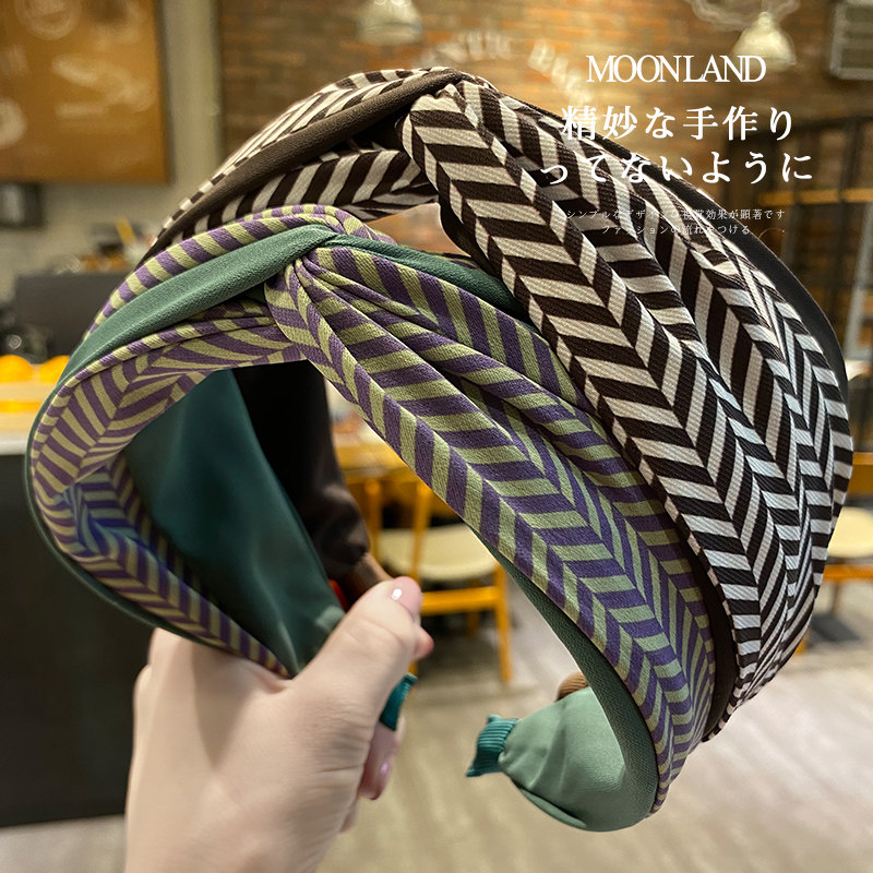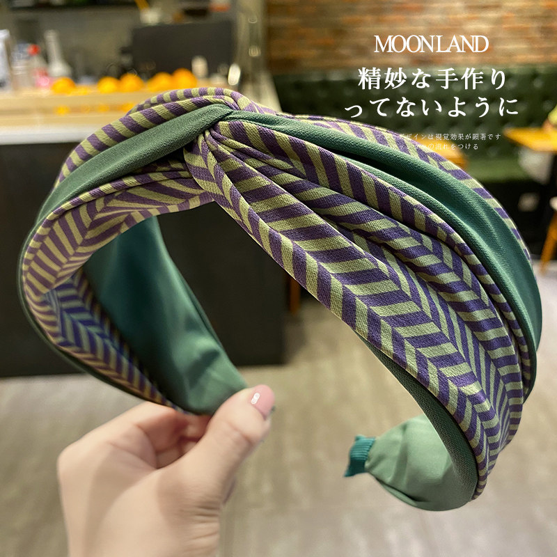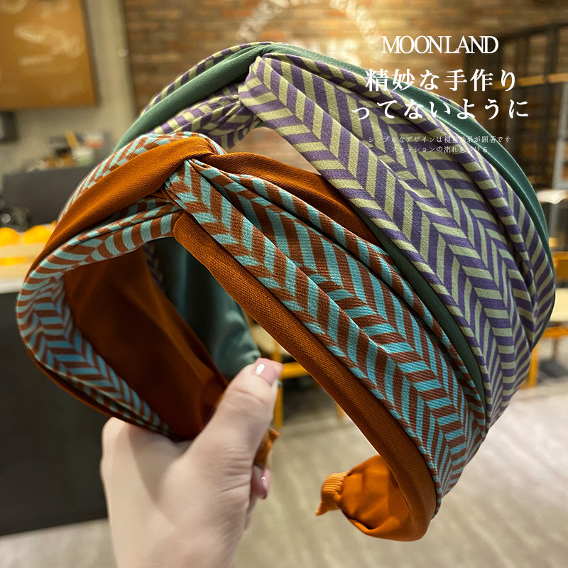 发箍网红2026年新款 条纹拼接宽边头箍洗脸压发夹发卡 韩国复古法式
