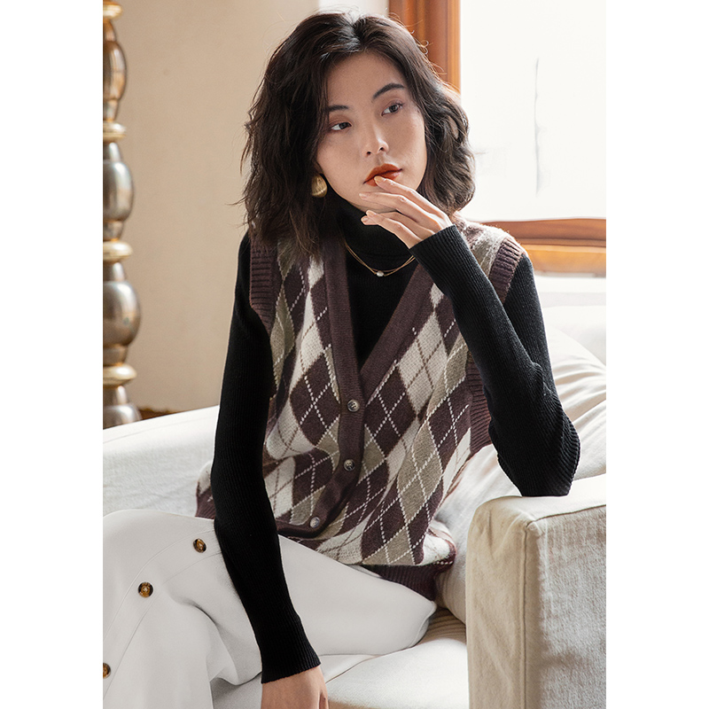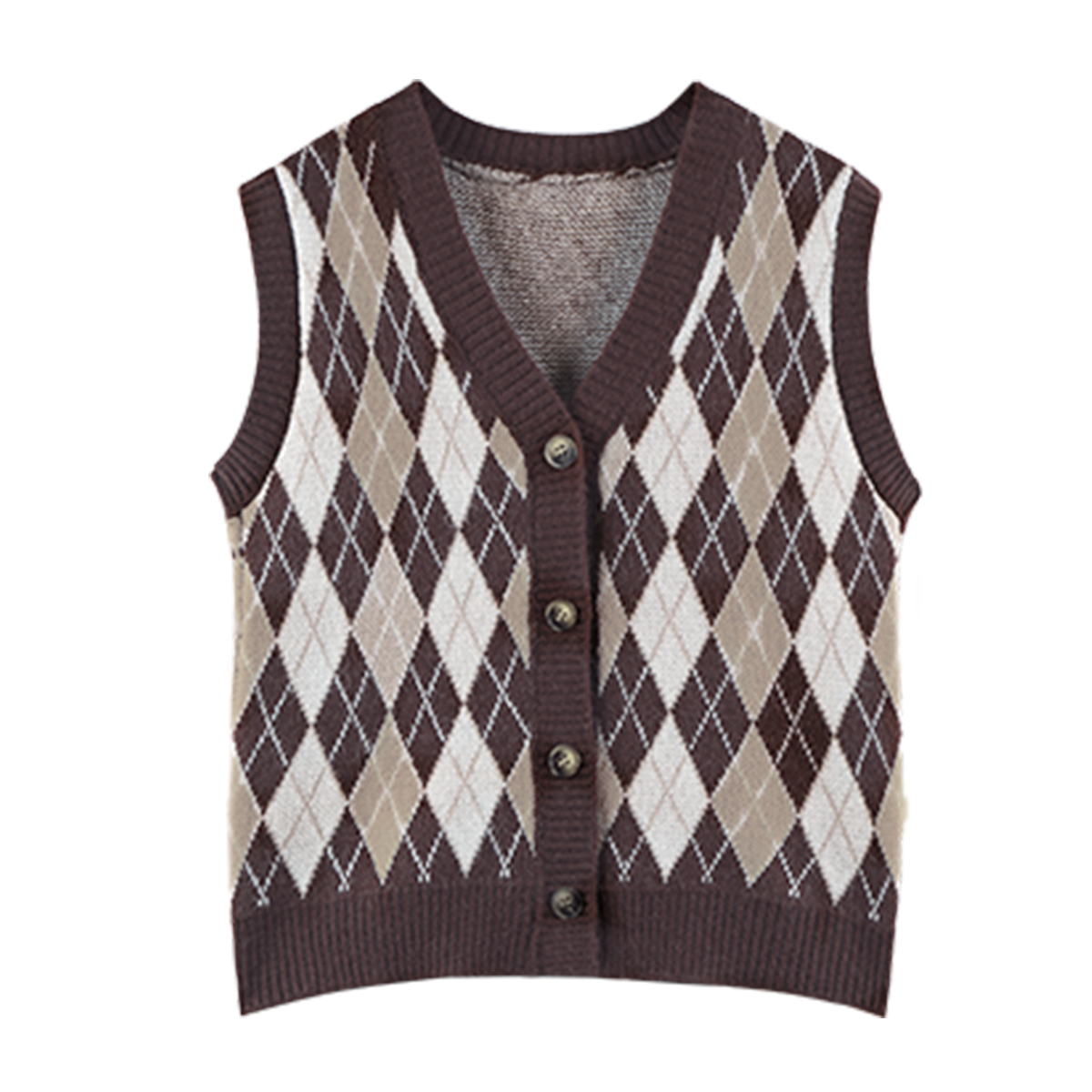 弥古复古格子针织马甲开衫 女士秋冬费尔岛毛衣背心马夹高级感上衣
