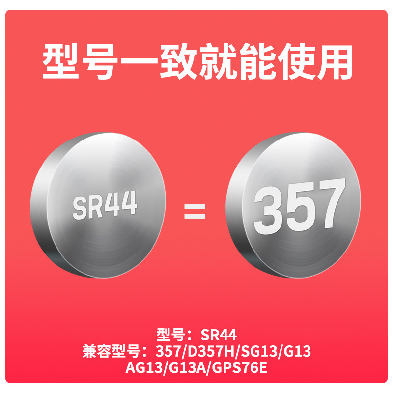 LR44氧化银1.55V手表电子玩具遥控器三丰数显游标卡尺扣式 松下SR44纽扣电池A76 357a L1154 小电子电池 AG13