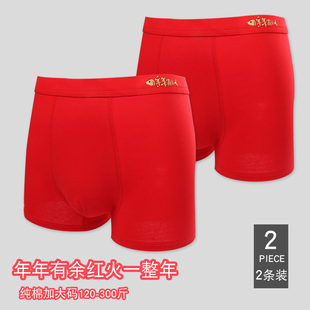 四角短裤 男宽松肥佬莫代尔大码 头 加肥加大纯棉内裤 本命年红色男士