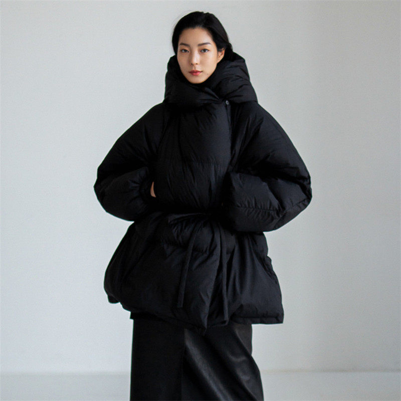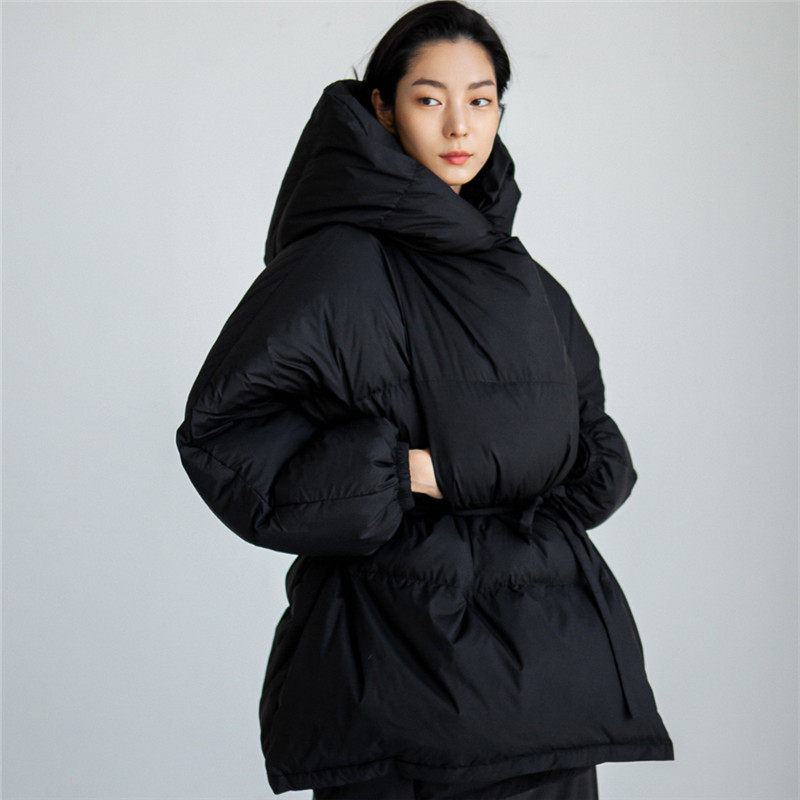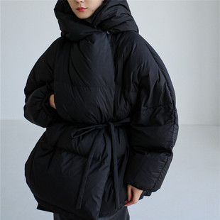 新款 时尚 连帽短款 宽松大码 休闲系带收腰羽绒棉服外套 棉衣韩版 冬装