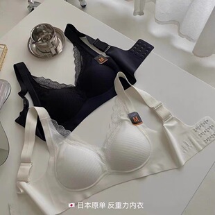 日本原单乳胶反重力内衣女无钢圈蕾丝调整型文胸女聚拢无痕宽肩带
