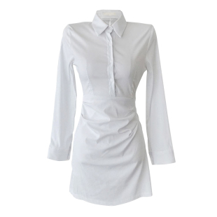 纽扣衬衣连衣裙法式 气质纯欲风 百搭收腰性感包臀长袖 裙修身 衬衫