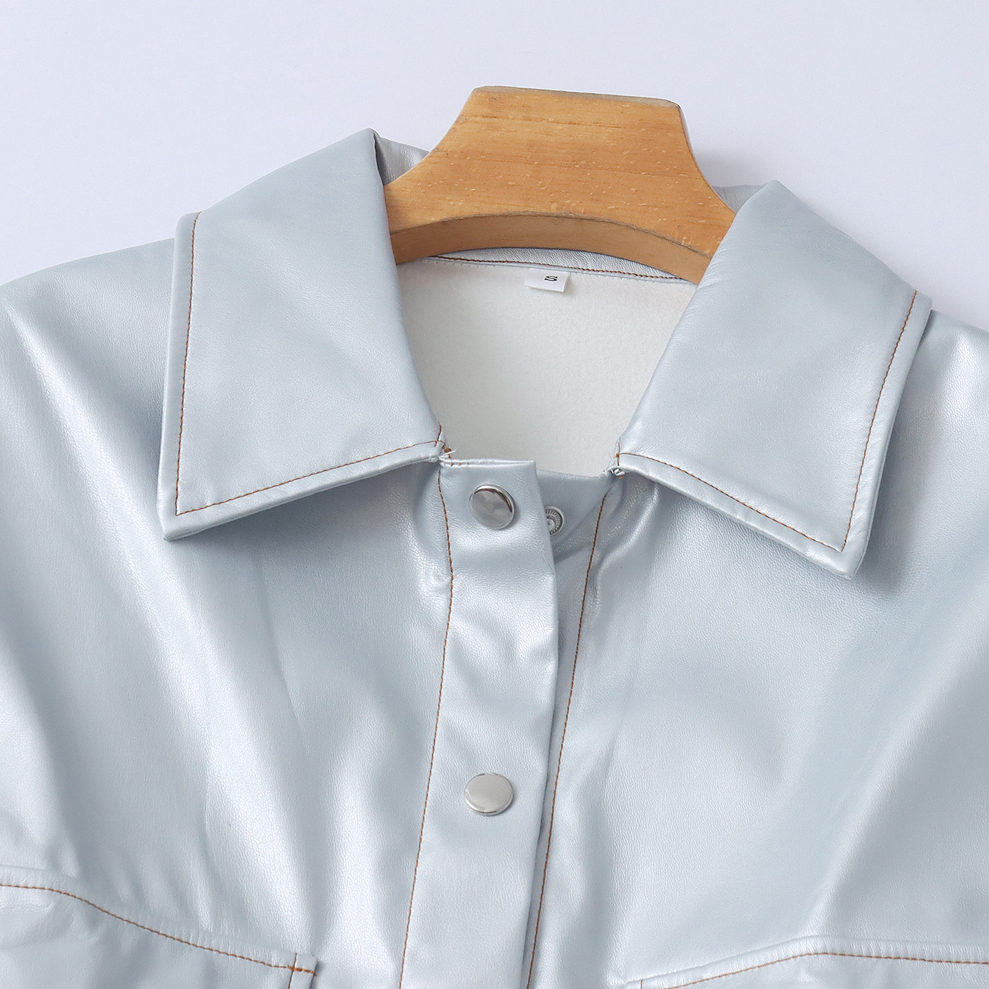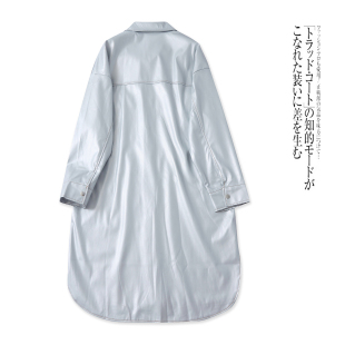 秋季 中长款 新款 翻领单排扣长袖 开叉31833 外贸女装 亮面皮风衣外套