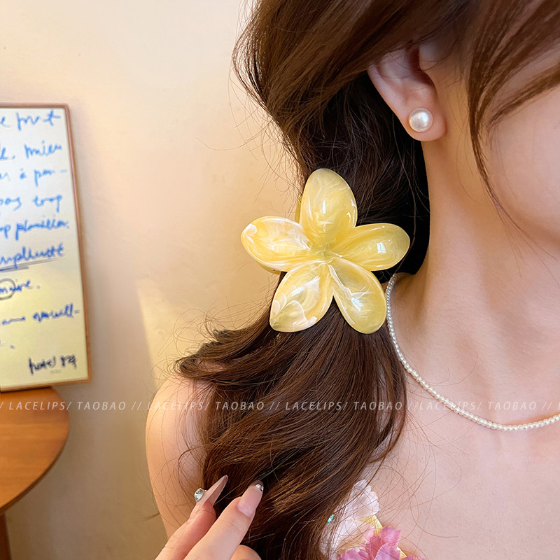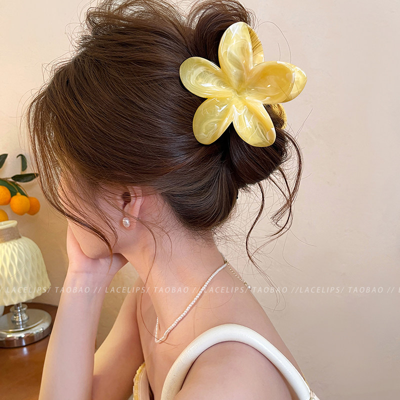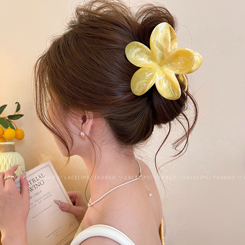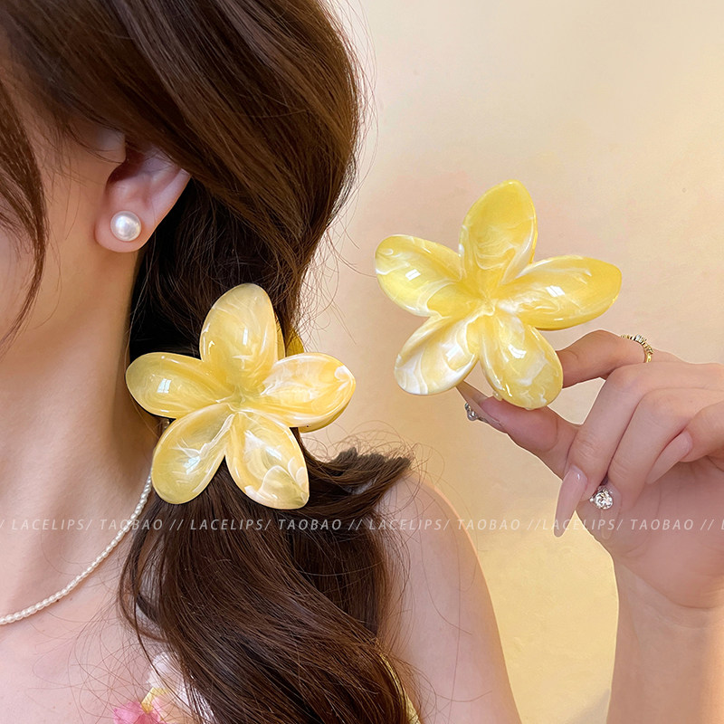 春日晕染鸡蛋花抓夹女高级感2026新款 甜美盘发鲨鱼夹马尾发夹发饰