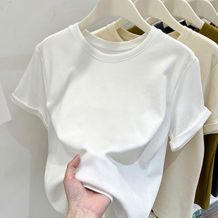 夏季 爆款 正肩显瘦遮肉独特超好看白色纯棉上衣 t恤女新款 纯棉短袖