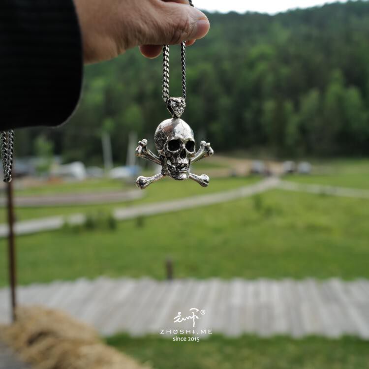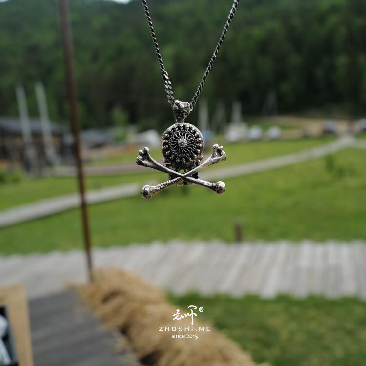 主师暗黑925银全新原创设计2025交叉骨棒骷髅头巴洛克风吊坠项链