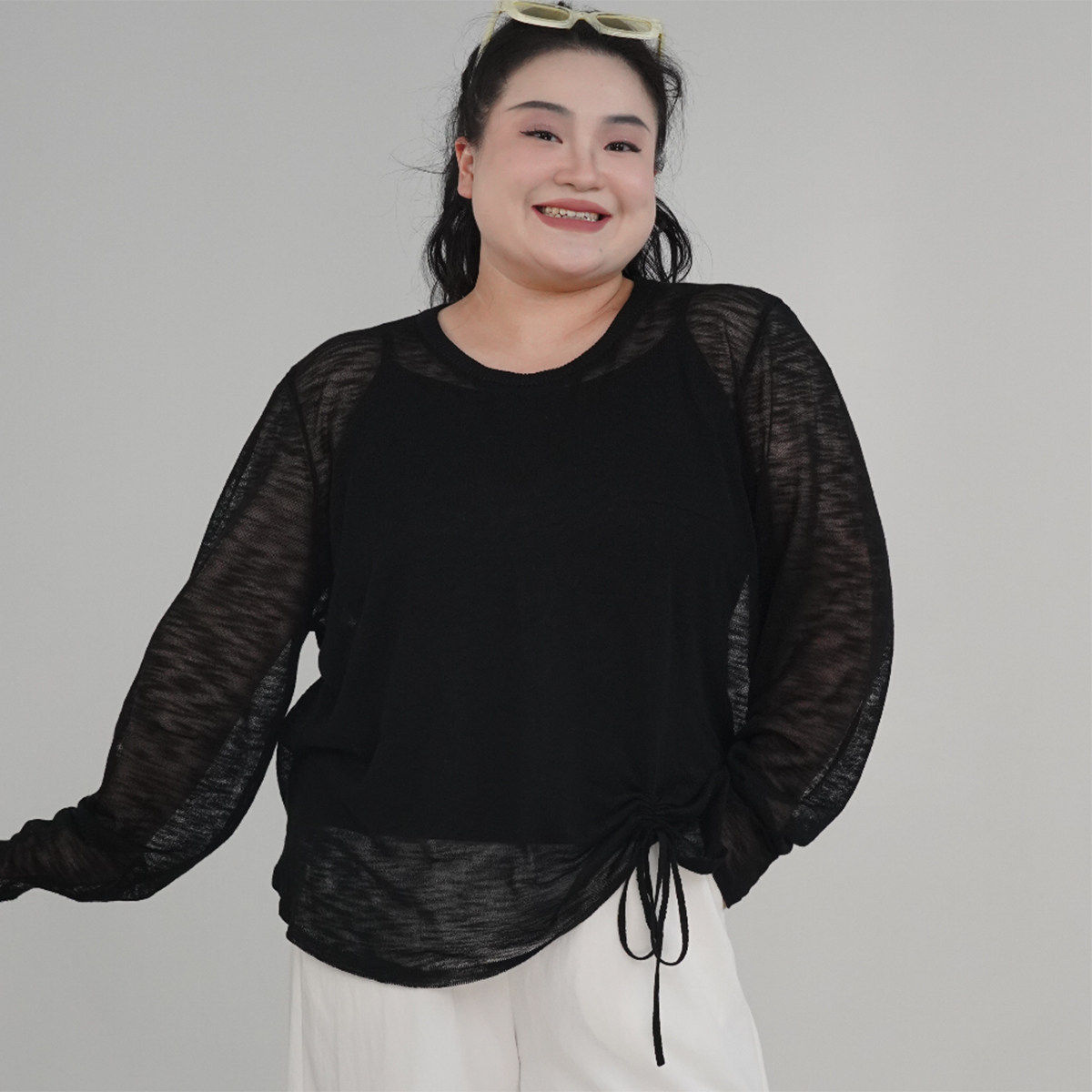 胖mm显瘦百搭清爽针织罩衫 大码 上衣YP25053 青柠织梦 福饮沸别