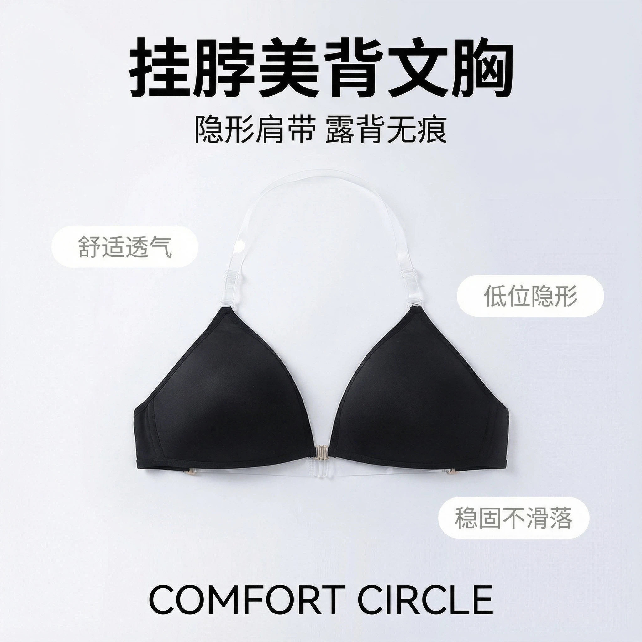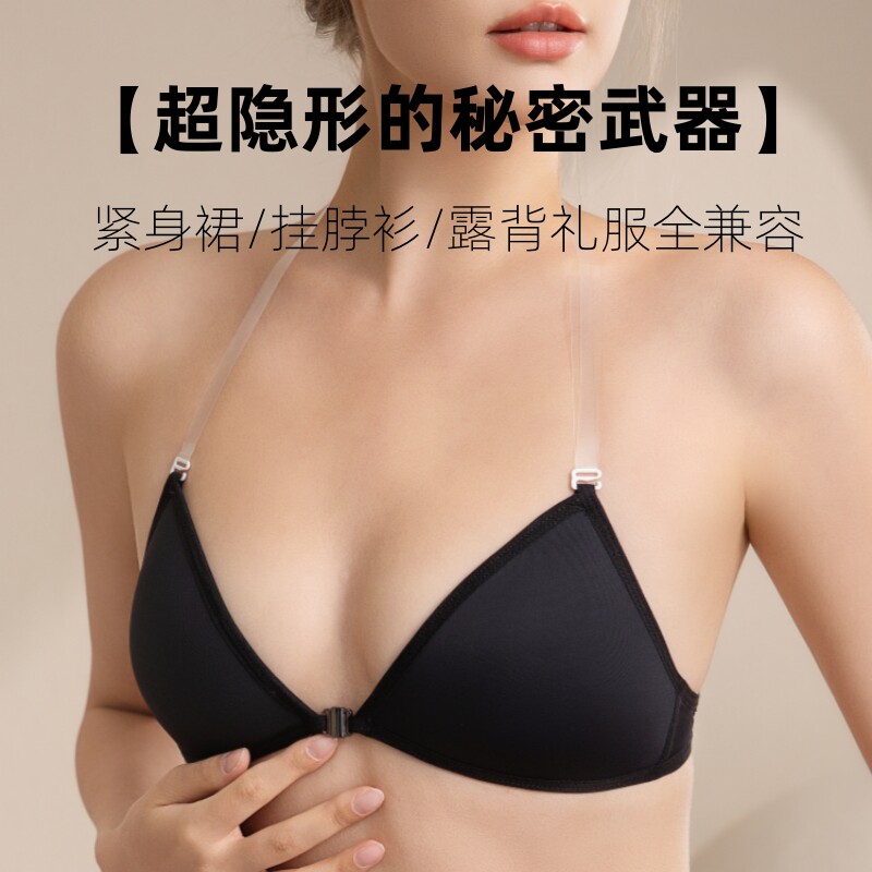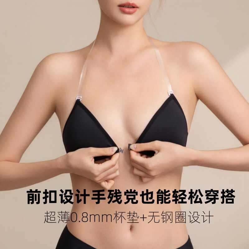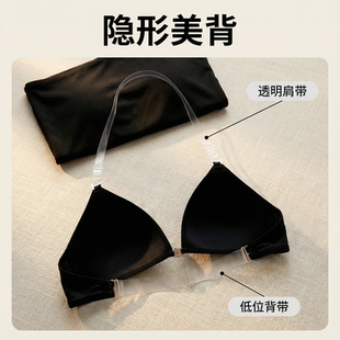 隐形文胸深V聚拢游泳比基尼三角杯透明肩带内衣美背可外露胸罩女