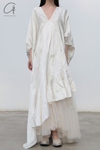 MULVAN方领挂脖连衣裙女高级感温柔气质网纱长裙小飞袖 收腰裙子