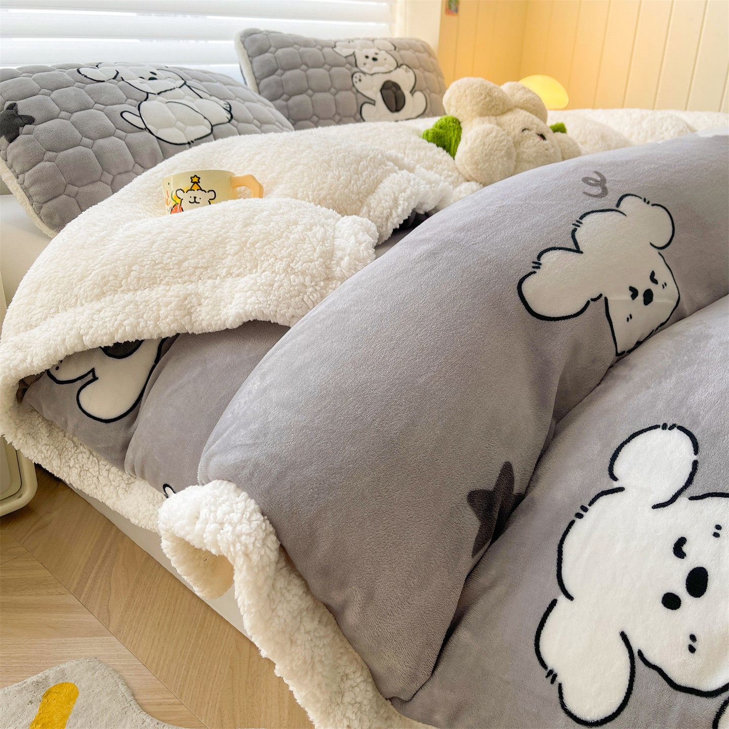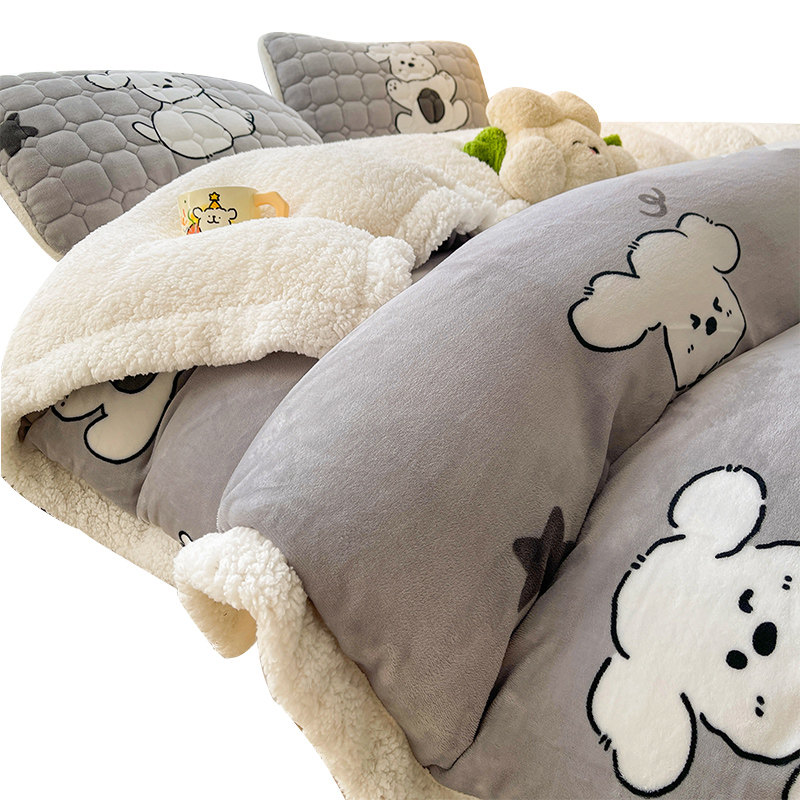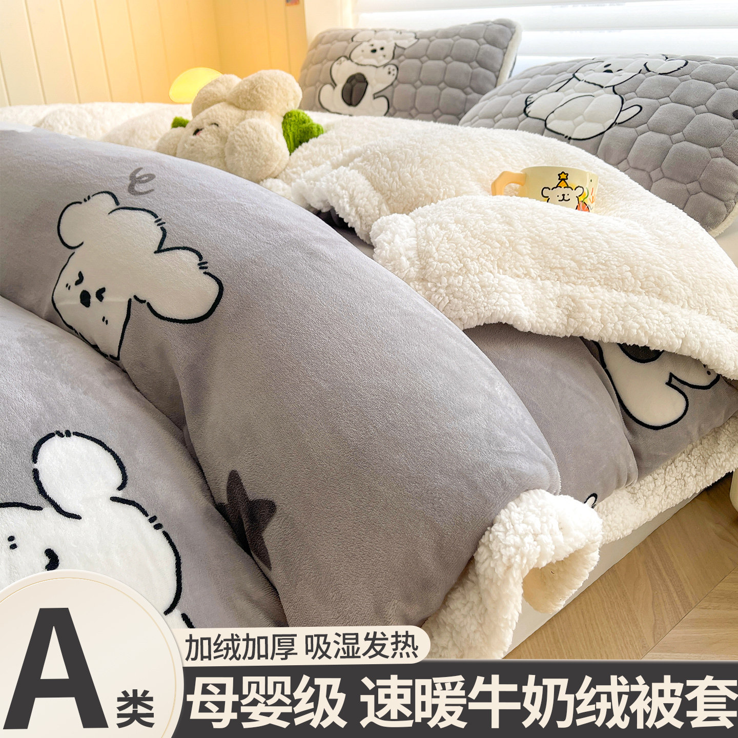 ins风冬季 保暖渐变色牛奶绒被套宝宝绒双人床单红色结婚庆四件套