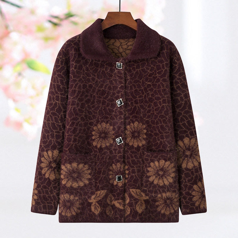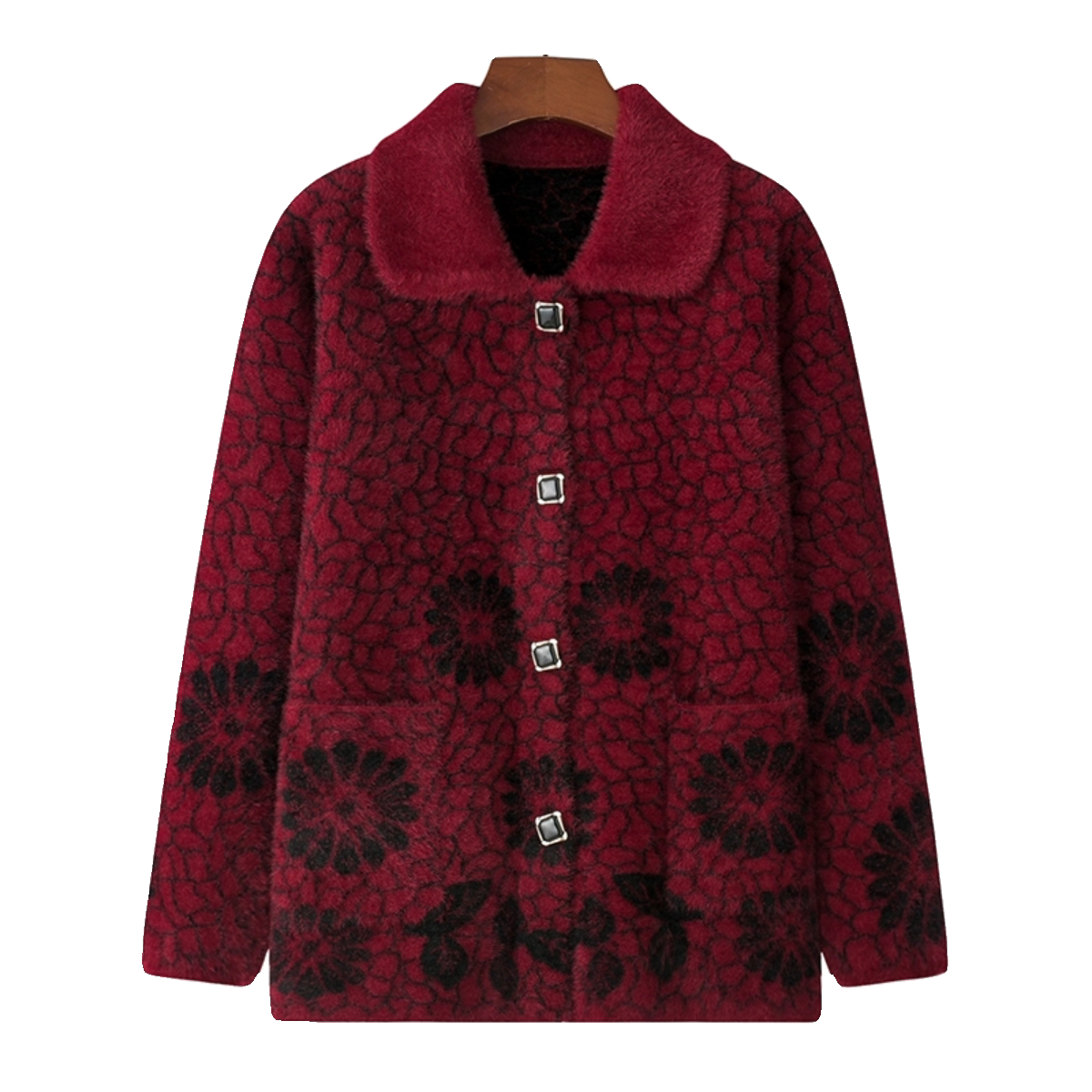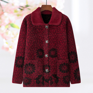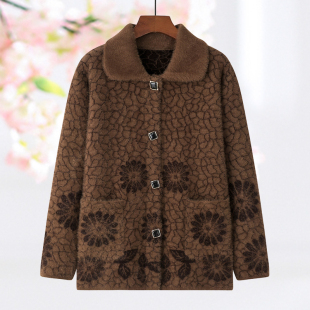 加厚保暖针织花色方领上衣妈妈装 冬季 仿貂毛外套奶奶装 中老年女装