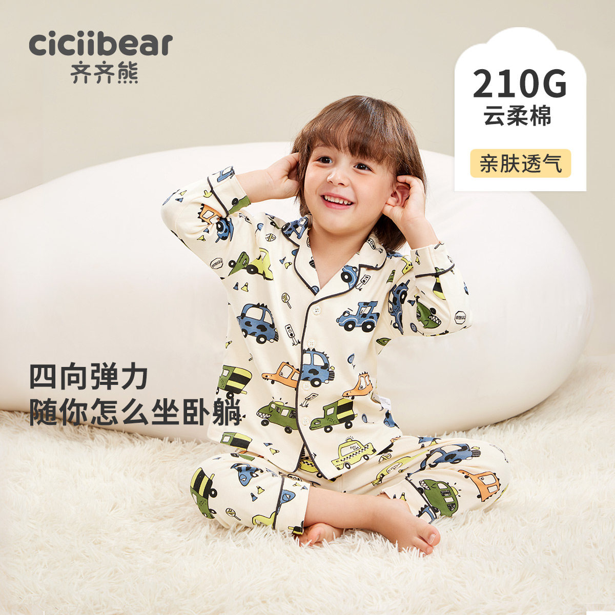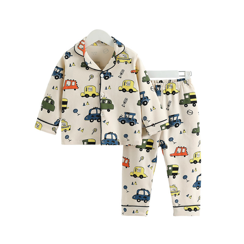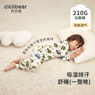 齐齐熊宝宝睡衣婴儿纯棉两件套翻领女童男童家居服套装 可外穿保暖