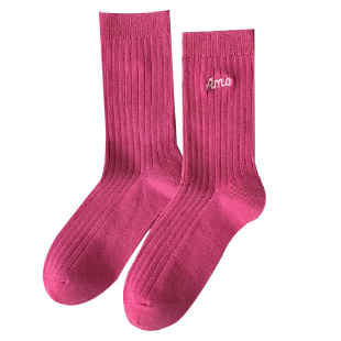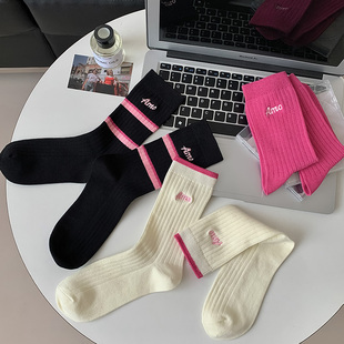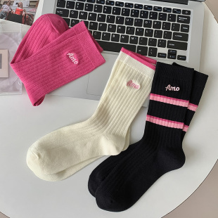 长袜条纹长筒 薄款 粉色袜子女中筒多巴胺运动玫红色夏季 可爱女款