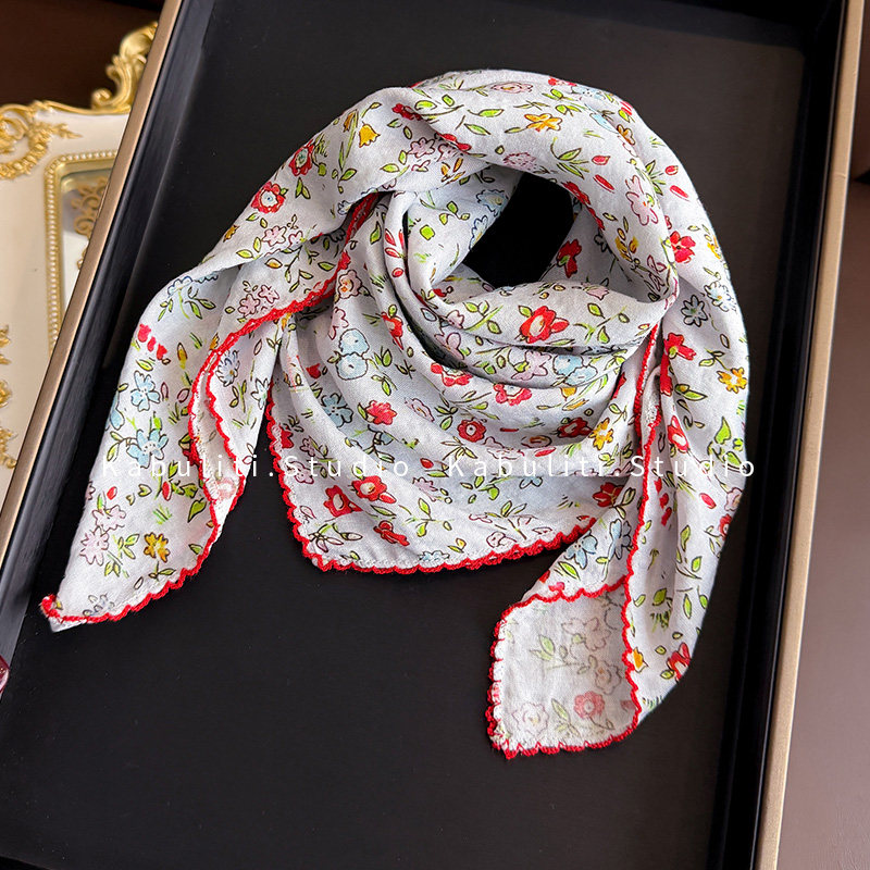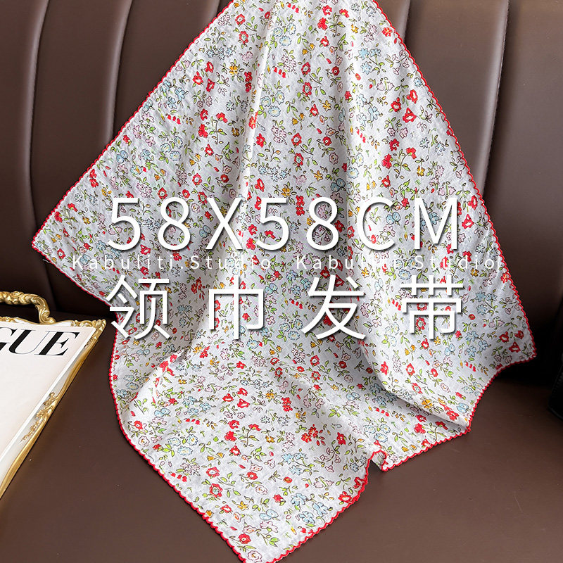 绿色法式 小方巾丝巾女三角包头防晒护颈围脖子扎头发带纱巾薄围巾