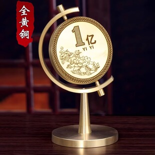 黄铜一个亿转转赚个小目标高级感小众客厅办公桌小目标铜电脑摆件