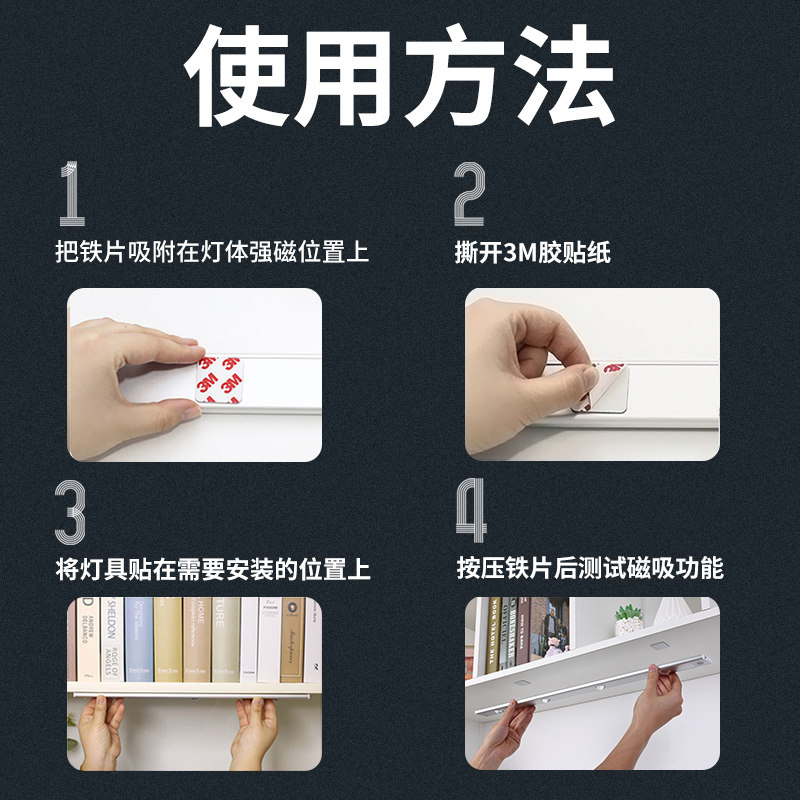 led充电灯带自粘感应无线免接线直角灯酒柜鞋 柜衣柜橱柜磁吸灯条