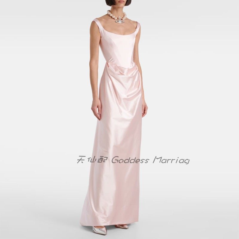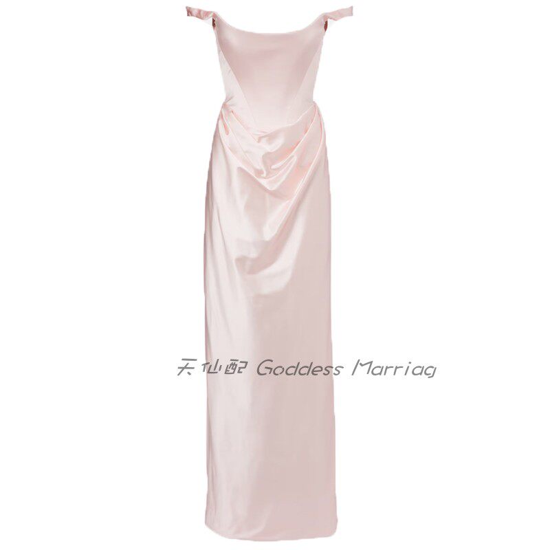 裸粉色晚礼服吊带长裙2025新款 高级质感新娘姐妹裙团体妈妈敬酒服