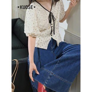 气质小衫 设计感短款 2026春夏季 女娃娃衫 上衣 新款 阔色杏色波点衬衫