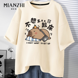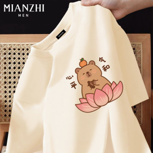 纯棉卡皮巴拉趣味大码 t恤2025夏季 学生体恤 男款 棉致卡通绿色短袖